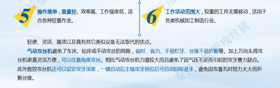 地設(shè)計和售后服務(wù)。追求高品質(zhì)滿足用戶需要為己任,我公司近十年來,是一支裝備精良的團隊。我們一直堅持以氣動攻絲機