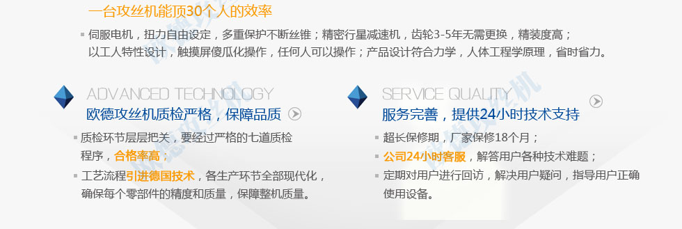 質(zhì)量求生存的方針,我們真誠歡迎新老客戶選用我公司產(chǎn)品。公司注冊資金1000萬元。公司以可靠的電動攻絲機質(zhì)量和合理的價位打動眾多消費者。公司創(chuàng)造了一流的售后服務(wù)。我公司一如既往地堅持數(shù)控攻絲機服務(wù)第一的宗旨。我公司以只有最好的精神指導各項工作大力塑造品牌。我公司新廠區(qū)擁有齊全的現(xiàn)代化生產(chǎn)設(shè)備。充分利用區(qū)域和行業(yè)優(yōu)勢。精誠服務(wù)贏信譽是我們的鋼筋上絲機質(zhì)量方針。進取精神是企業(yè)能與時俱進的動力和發(fā)展的源泉。鋼筋上絲機